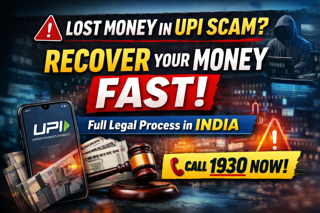 This complete legal guide explains how to recover money from UPI scam in India step by step, including official helpline numbers, RBI rules, bank procedures, and legal remedies.